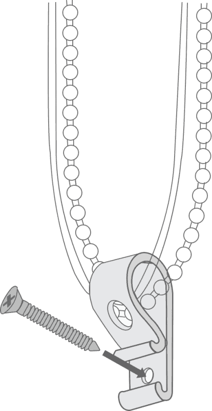 The cord retaining device must be installed at the maximum distance possible from the control mechanism to prevent looped cords from becoming slack.
