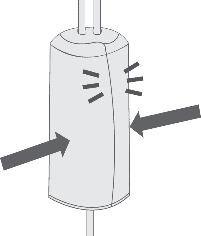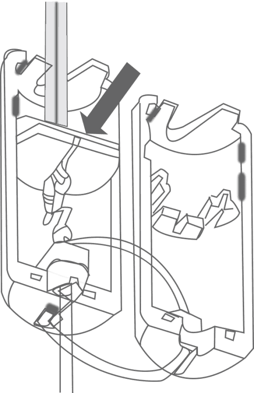Slot the cords into the channel in the centre of one half of the consenser. If your condenser differs slightly from the diagram, don’t worry, just slot any cords that aren’t already tied into place inside in the same way.