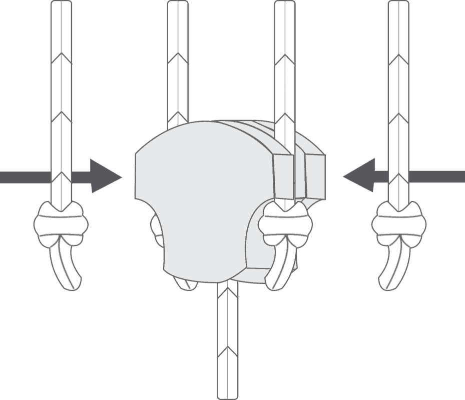 Wrap the cords around the cord cleats in a figure of 8. When the cords are fully accumulated, ensure they are secure so that when any cord is pulled, no excess cord is released.