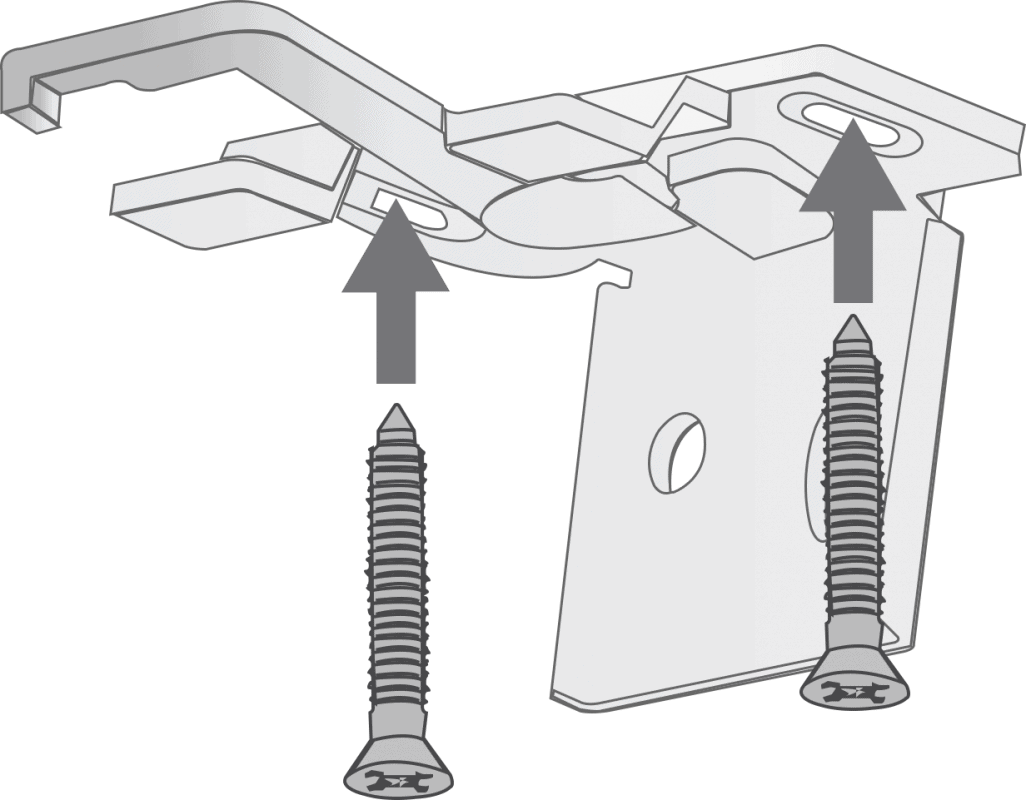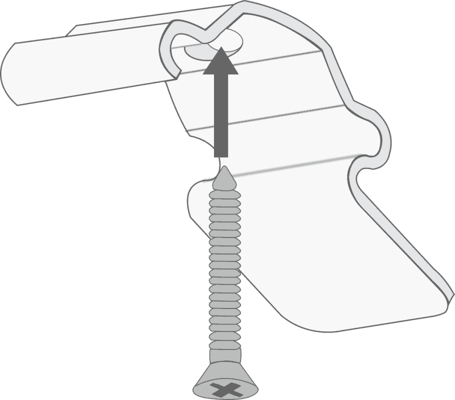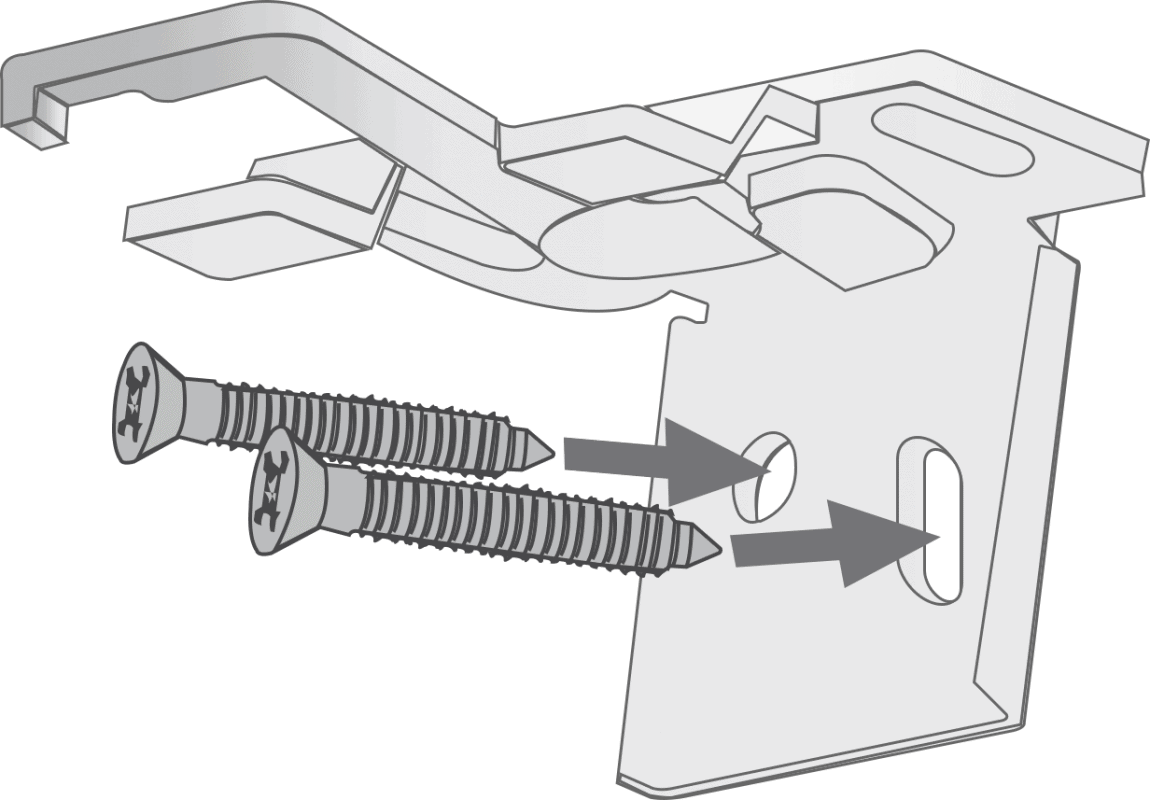 Mark the hole positions and drill as required. Use the screws provided to attach the safety cleat to the wall.