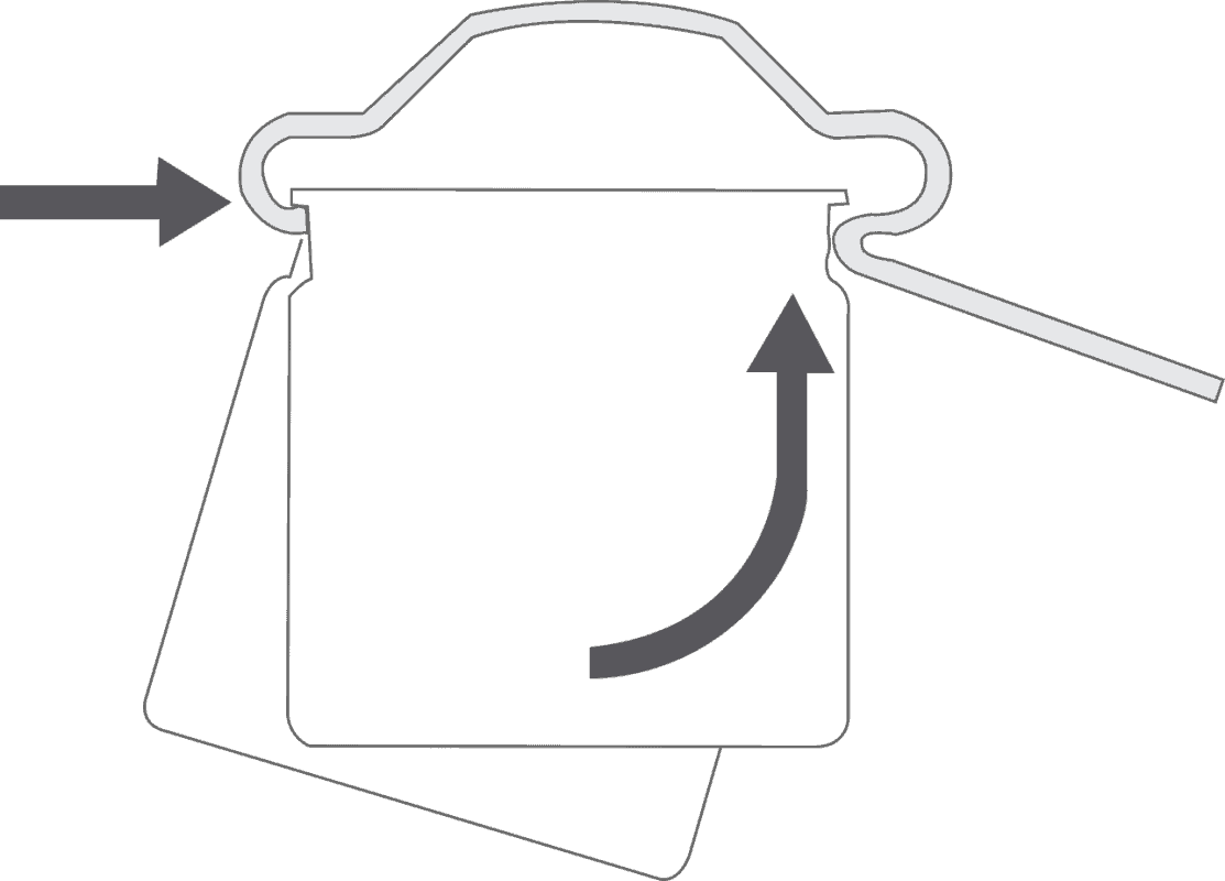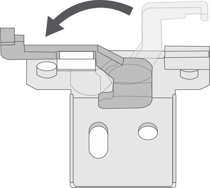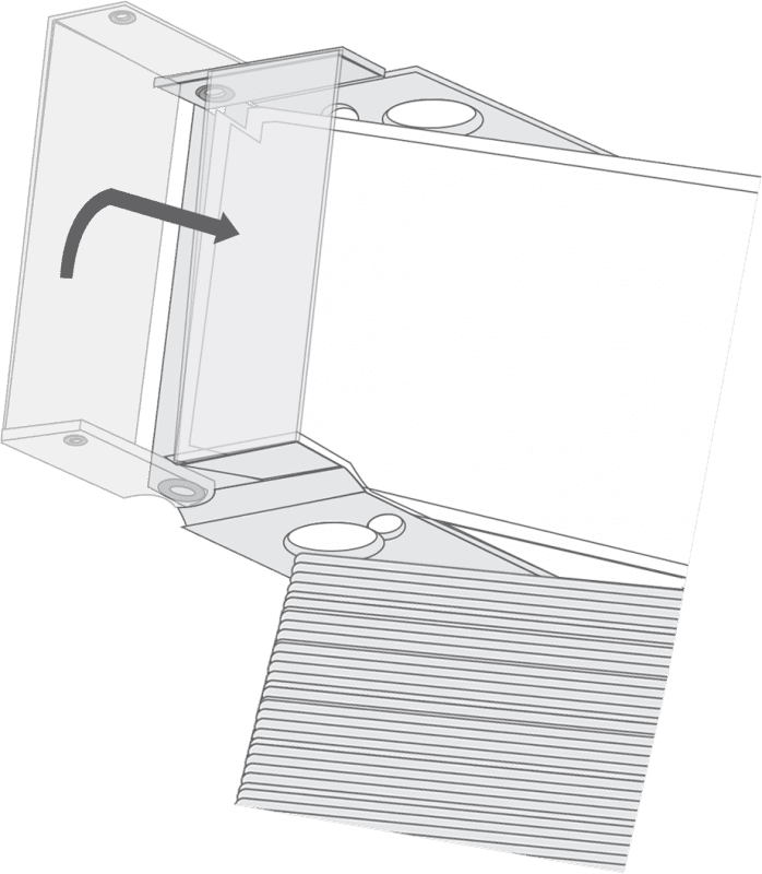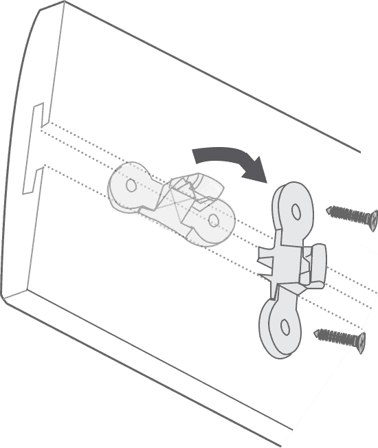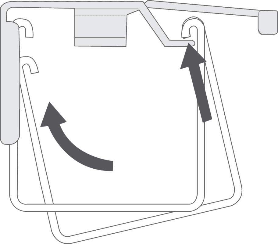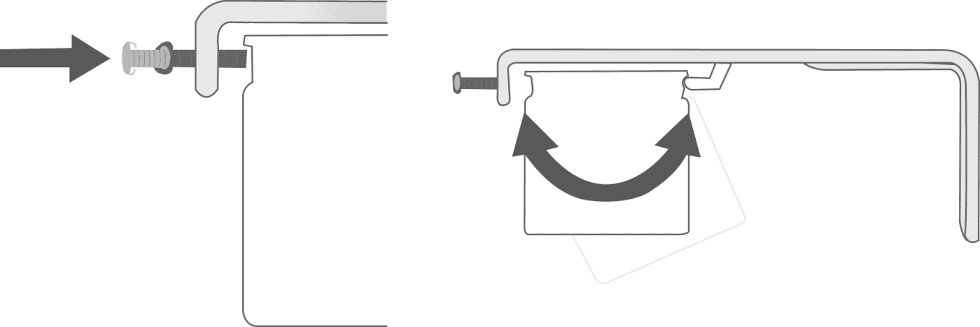 Hook the front lip of the headrail over the protruding hooks at the front of the bracket, then raise the back of the headrail so that it’s level. Holding it in this position, swing the swing-arm over and press it firmly against the headrail to lock it in place.