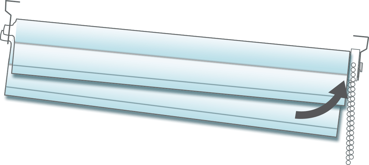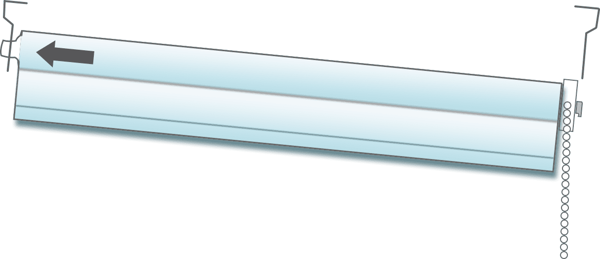 If you wish to change the roll method then it’s easy; simply pull the back of the chain to lower the blind, and continue pulling until the metal tube is exposed. Keep going and the blind will begin to raise, with the fabric now rolling up over the front of the roller tube. Note that this will reverse the direction you must pull the chain for raising and lowering the blind (you’ll now use the front of the chain to lower and the back of the chain to raise).